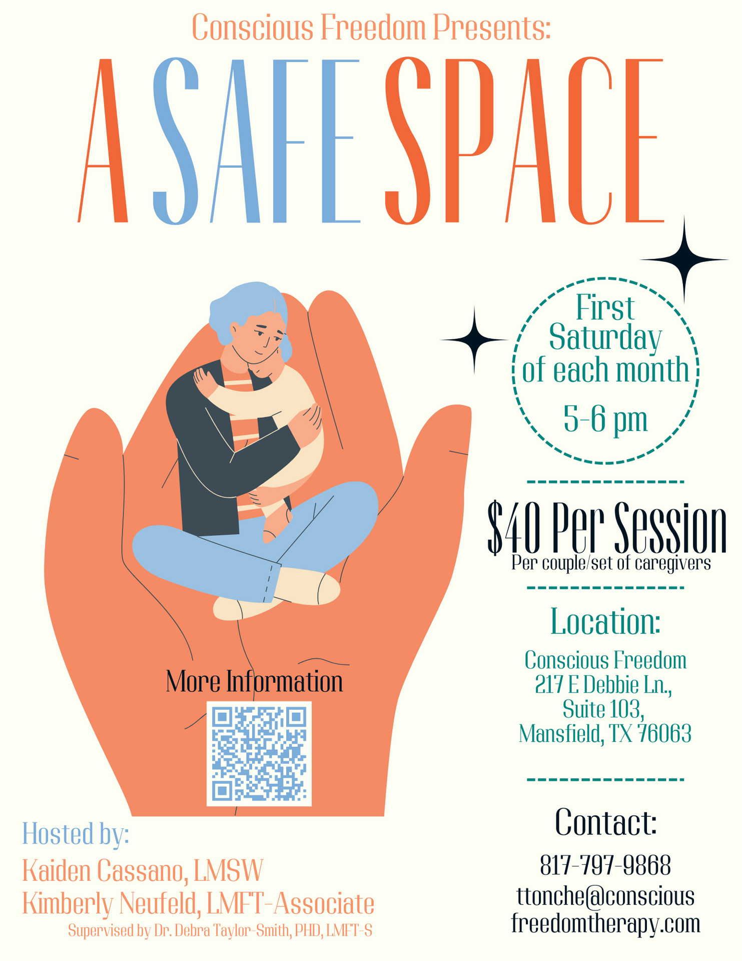 Discover "A Safe Space" - a confidential support group dedicated to helping you navigate the complexities of caring for a child with mental illness. Connect with others facing similar struggles, reduce stress, and find practical solutions together. Led by two passionate Conscious Freedom Therapists, this group is committed to uplifting and empowering you every step of the way. Each session begins with clear guidelines to ensure a supportive environment. Here, you’ll find hope, learning, and a sense of community. Share openly, participate fully, and feel understood among those who truly get it. Join us at "A Safe Space" - where you are not alone.